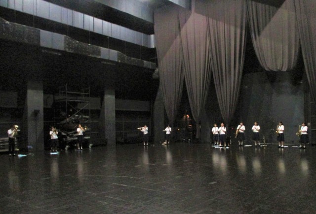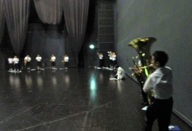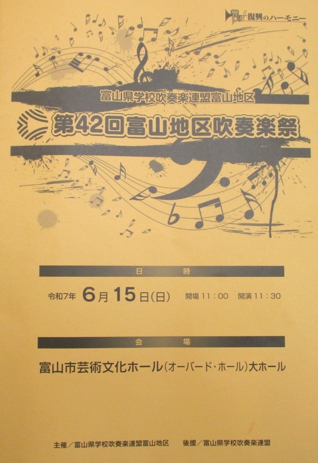15日(日)吹奏楽部 第42回富山地区吹奏楽祭 公開日 2025/06/15 更新日 2025/06/15 部活動 吹奏楽部は、オーバード・ホールで開催された富山地区吹奏楽祭に出場しました。「ステップ、スキップ、ノンストップ(順次進行によるカプリッチョ)」小組曲「パラドックスの箱」3.エコーズ 4.ラメント 2.サルタレロ 5.コーダの2曲を演奏しました。1年生も初ステージに立ちました。心に響くとてもステキな演奏でした。写真は、本番前に奥舞台でチューニングをしている様子です。 +1