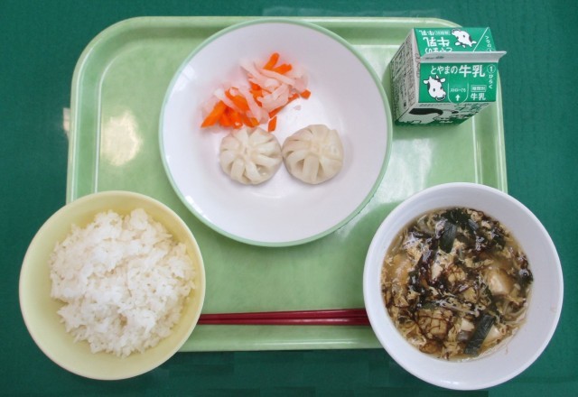 25日(水)今日の給食 公開日 2025/06/25 更新日 2025/06/29 東部中学校の様子 今日の献立は、「ごはん、牛乳、えび包子、なます、もずくと卵のすまし汁」でした。「もずくと卵のすまし汁」は、もずくの食感がよく、ふわふわのかきたまごとからんで、とてもおいしかったです。