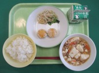 今日の献立は、「ごはん、牛乳、にんじんシューマイ、塩ナムル、マーボー豆腐」でした...
