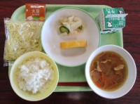 今日の献立は、「ごはん、牛乳、照焼きチキン、海藻サラダ、里芋といかの煮物」でした...