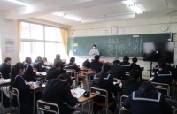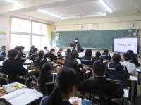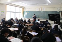 1年生の授業の様子を紹介します。【写真上:社会】【写真中:数学】【写真下:英語】
