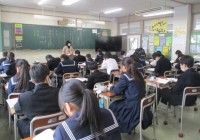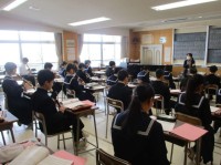 1年生の音楽の授業の様子です。卒業式で歌う在校生合唱の練習が始まっています。