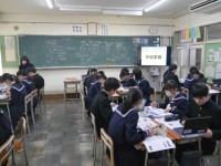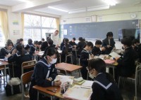 2年生の授業の様子を紹介します。【写真上:美術】【写真中:社会】【写真下:理科】