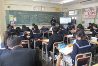 2年生の授業の様子を紹介します。【写真上:社会】【写真下:英語】