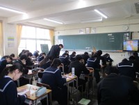 おはようございます。曇り空に風が吹いて、肌寒く感じる朝です。今日の授業は、5限までです。5限に、3年生は県立高校一般入試に向けて激励会を行います。