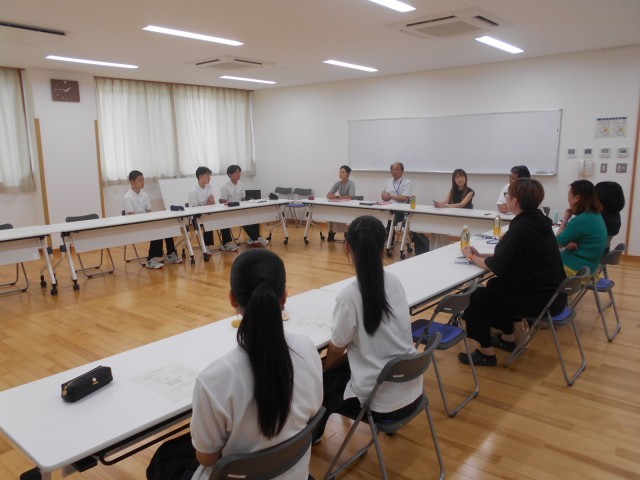 昨日17日放課後、育成会と生徒会との懇談会を行いました。生徒会長や専門委員長がこれまでの生徒会活動の取り組みを説明し、育成会や学校への要望を伝えました。要望のいくつかは、育成会役員の方々に前向きに検討していただけることになりました。