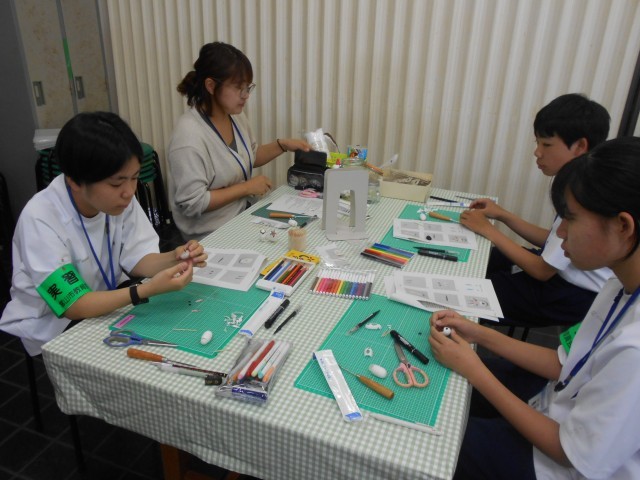 次の企画展に向けて、まゆ玉を使ったマスコット作りに取り組んでいました。