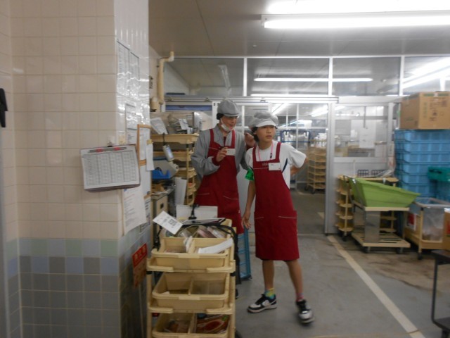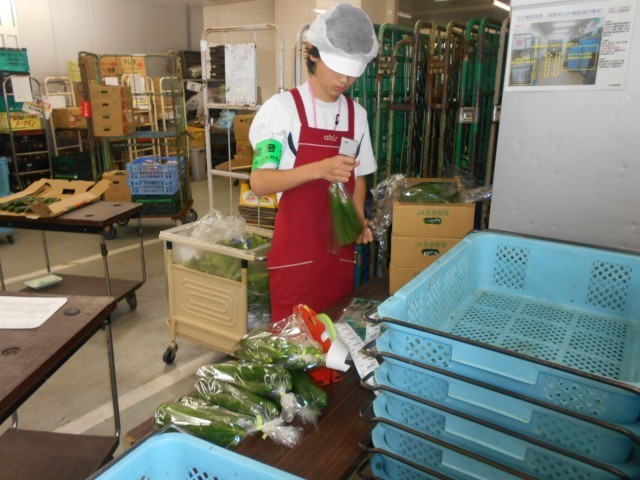 品出しや野菜の袋詰め、値付けなどの作業を行っていた。生徒たちも「慣れてきました」と話すように、手慣れた様子で、商品の補充をしていて、作業が終わったときには次にすべき作業をスタッフさんに確認する等、しっかりとコミュニケーションがとれていました。