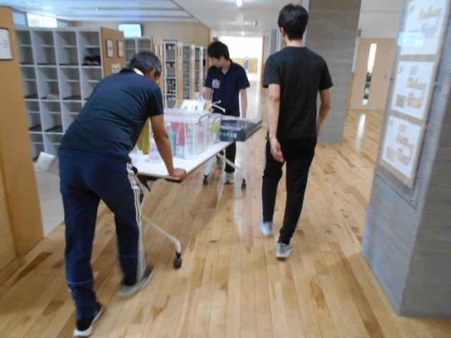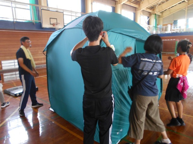 本日午後、体育館において、本校教員と五福地区センター、市役所職員の方々で避難所開設訓練を行いました。災害の際、近隣の第1次避難所が避難者を受け入れ切れなくなった場合、本校が第2次避難所として開設されます。
