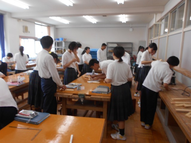 3組技術では、木製品の製作を行っています。進度はまちまちですが、一生懸命取り組んでいます。