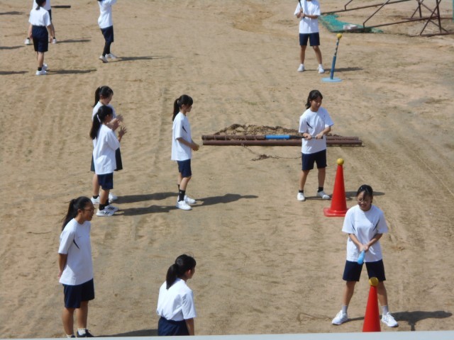 久しぶりにWBGT(熱中症指数)を気にせず、グラウンドで体育ができました。1組はサッカー、3組はソフトボールをしました。