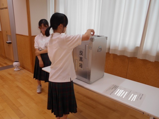 1年生にとって、今回の後期生徒会役員選挙は、初めて選挙運動の様子を見て、立候補者の演説を聞き、投票用紙に考えを反映させる経験となりました。一人ひとり、真剣に考えて記入し、投票箱に用紙を入れていました。