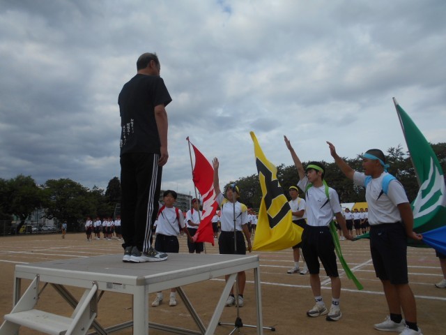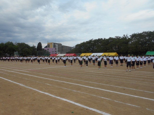 第79回体育大会を行い、開会式を行いました。団演技途中から雨が降り出したため、団演技終了後に競技を中断しました。