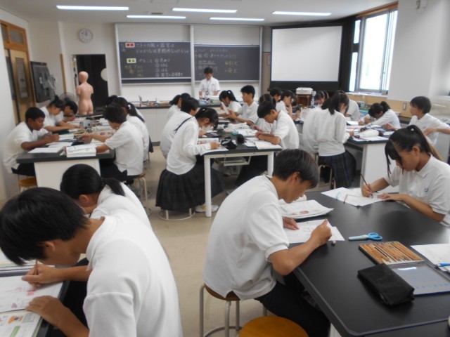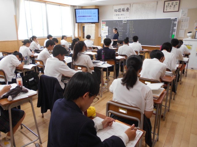 写真クリックして上から1組理科、2組音楽、3組英語の様子