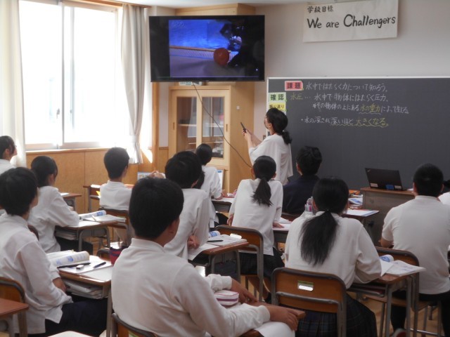 2組理科では、「ふくらんだ風船は水の中でどうなるか?」、その様子をビデオ映像で確認しました。四方から水圧がかかっていましたね。