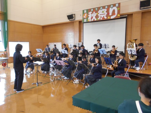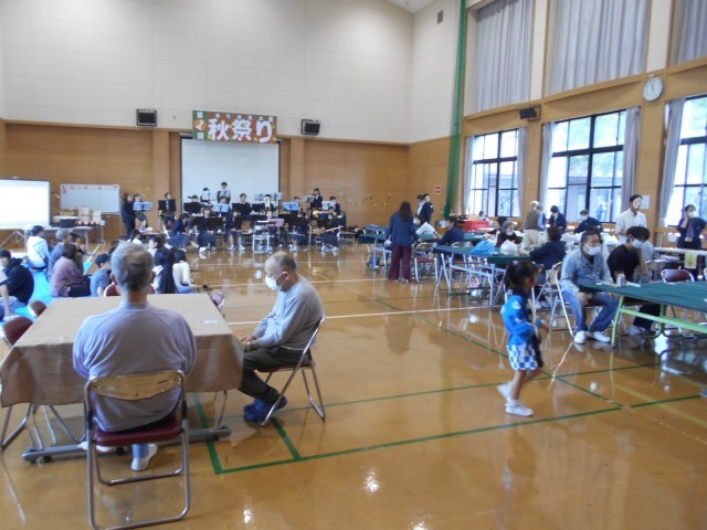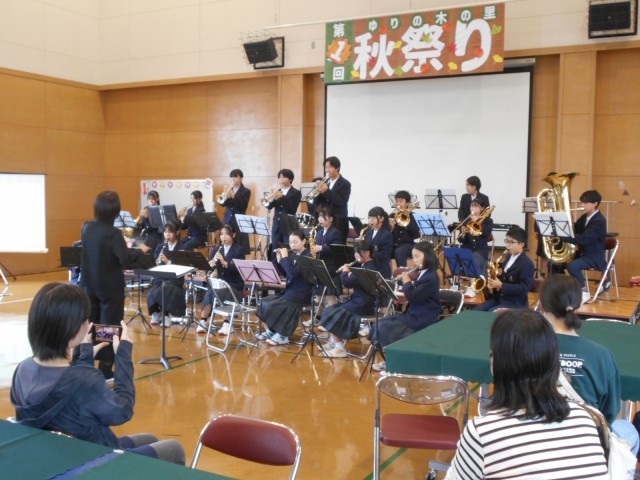 本日、吹奏楽部は「社会福祉法人 富山県精神保健福祉協会 ゆりの木の里」の「第1回秋祭り」のオープニングで演奏を披露しました。ちょっと懐かしいJ-PОPやアニメソングのメドレーなど、よく知られた曲が中心で、「ヤングマン」では、来場の皆さんが一緒にYMCAの振り付けで踊るなど、会場が和やかな雰囲気になりました。