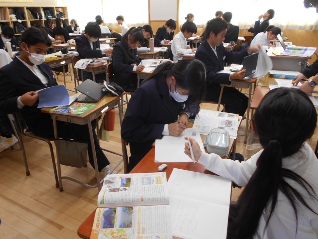 写真クリックして上から1組数学、2組英語、3組社会の様子