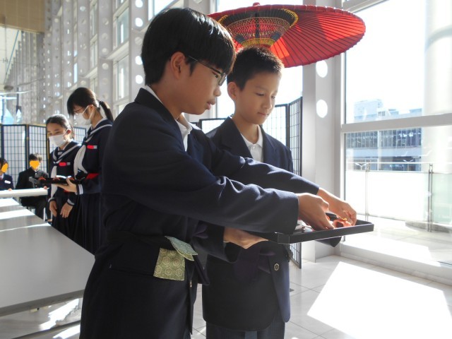 11月8日(土)第21回富山市中学校文化祭がオーバードホールで開催されました。本校からは茶道部がお茶席の5席目を担当し、来客者をもてなしました。また、美術部の作品や書道、家庭科の作品等、多くの生徒作品も展示されました。会場には、市内各中学校の生徒や保護者、一般の方等、大勢が訪れ、盛況でした。