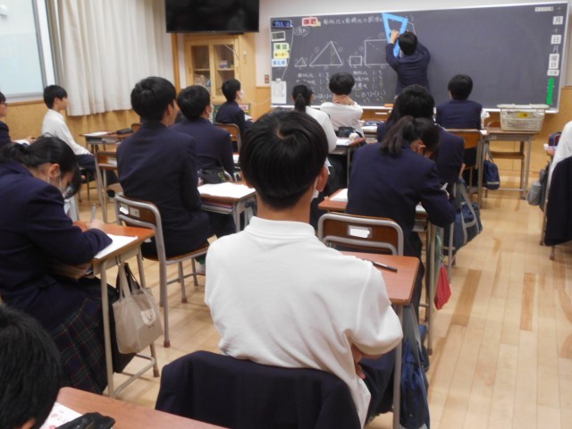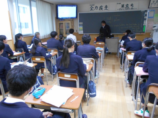 1組英語では、先日の中教研学力調査の問題を例にしながら、英作文の作り方についての説明を聞きました。何としても、次回のテストに生かしたいものです。