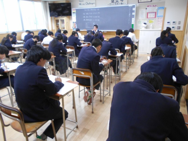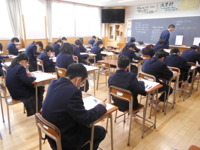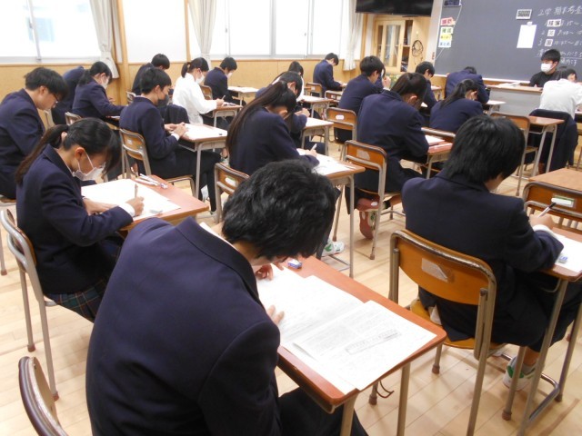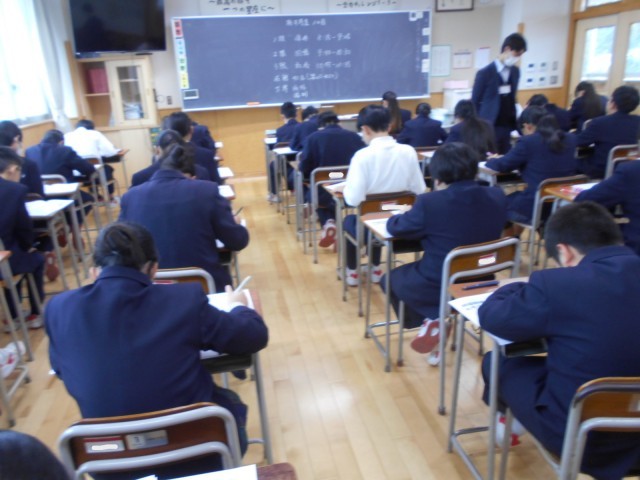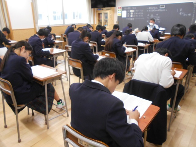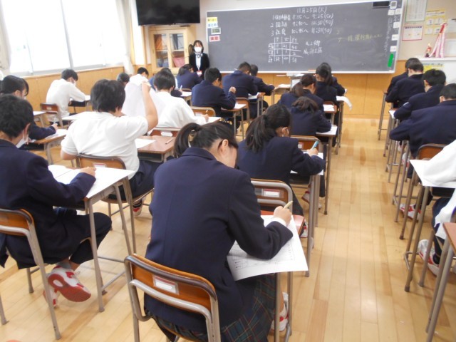 今日から第2学期の期末考査が始まりました。残念ながら、2年生はインフルエンザ等の欠席者が急増し、期末考査を来週に延期し、明日から2日間、学年閉鎖することになりました。1、3年生の皆さんは体調管理に注意し、3日間元気に登校し、しっかりと問題に取り組んでください。