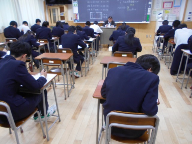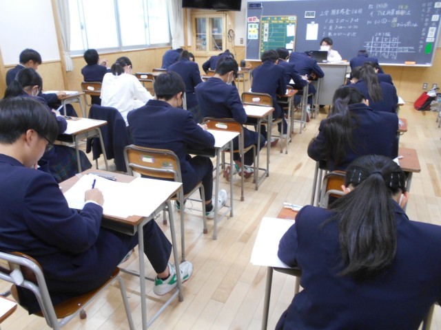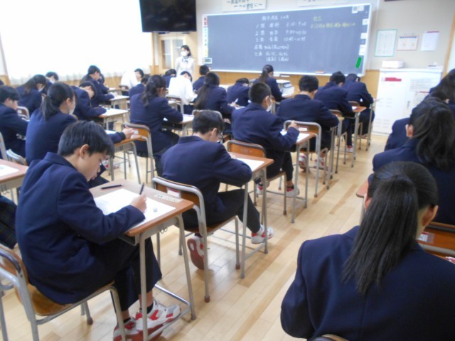 期末考査2日目。どのクラスも真剣に問題に取り組む姿が見られました。あと1日です。頑張ろう!