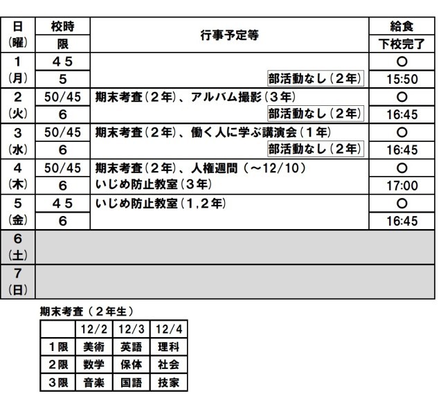 12/1(月)~12/7(日)の予定