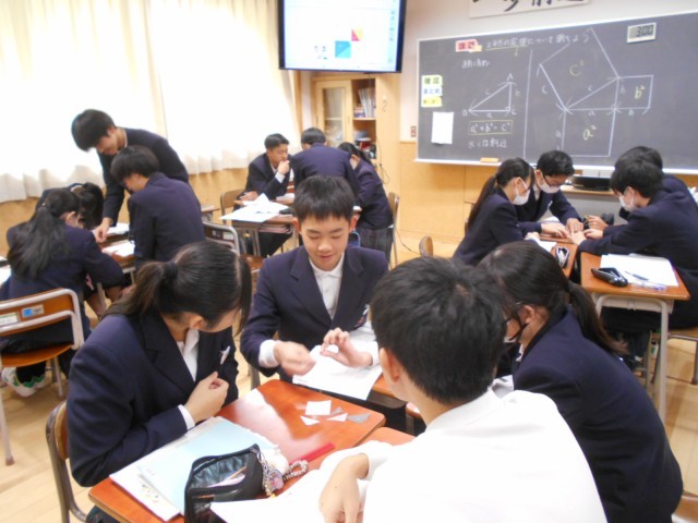 写真クリックして上から1組英語、2組理科、3組数学の様子
