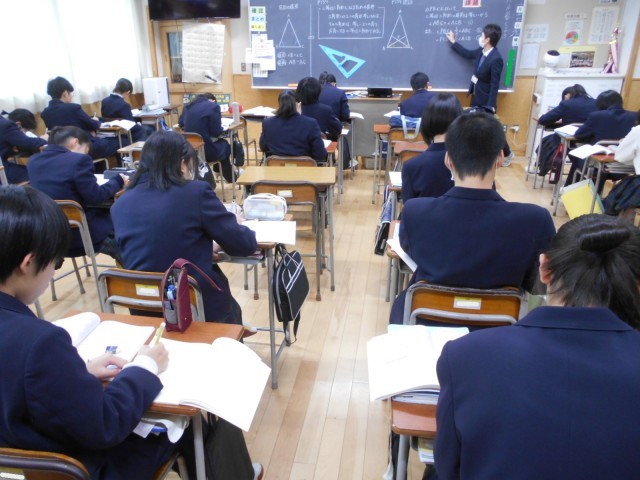写真クリックして上から1組書写、2組書写、3組数学の様子