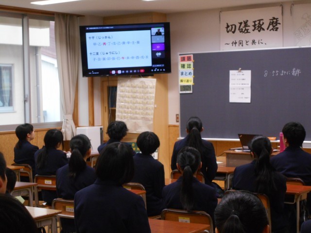 今日から3学期が始まり、始業式は寒さを考慮し、オンラインで実施しました。式辞では校長から「自分に負けない」「うそや悪口を簡単に信じ、簡単に広めるようなことはしないでほしい」「3学期では次のステージ(学年)に向けて準備をしてほしい」と生徒にメッセージを贈りました。
