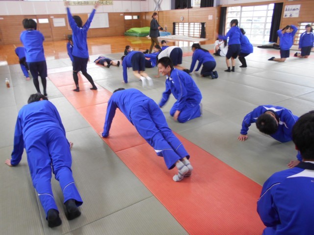 3組保健体育では、基礎トレーニングを行いました。冬は運動不足になりがちなので、家でもできるといいですね。