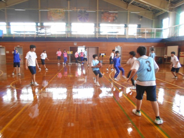 2組保健体育は男女に分かれて、バスケットボールのゲームをしました。3年生は運動不足になりがちなので、久しぶりの体育に張り切っていました。ただし、指などのケガだけには要注意。受検を控えている身であることをお忘れなく。
