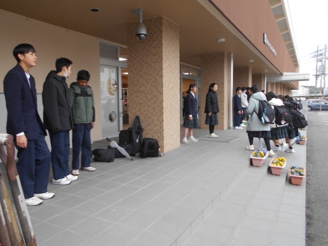 生徒会朝の挨拶運動「ウェイクアップスマイル」がありました。冬になり、生徒たちの元気な挨拶が少なくなっているように思います。元気な挨拶で寒さを吹き飛ばそう!
