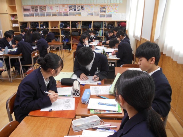 写真クリックして上から1組国語、2組美術、2組の美術作品、3組地理の様子