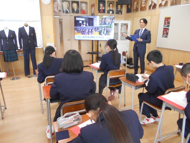 1学年では、キャリア教育の一環として、6つの職種(金属切断総合メーカー、ウェブプランナー、制服専門店経営、木材インストラクター、キャリアコンサルタント、フィットネスジム経営)に就く方々を講師に招き、13歳のワークショップを行いました。生徒たちにとっては、あまりなじみのない職種が多かったのですが、講師の方々の仕事に対する誇りに触れることができたように思いました。講師の皆さん、お忙しいところ、生徒たちのために時間をつくっていただき、ありがとうございました。