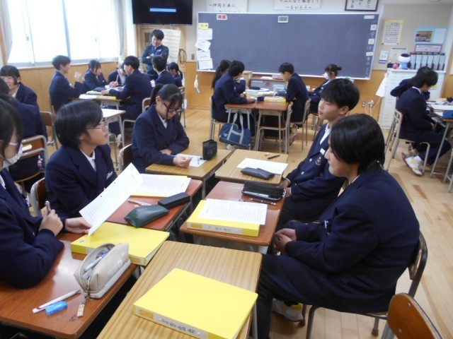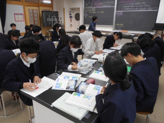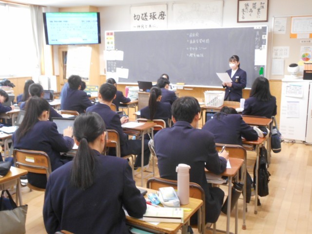 1組では、高校に関するクイズ、3組では、「高校調べ」発表会と、総合的な学習の時間に進路学習を行いました。あと1年後は皆、受験生です。