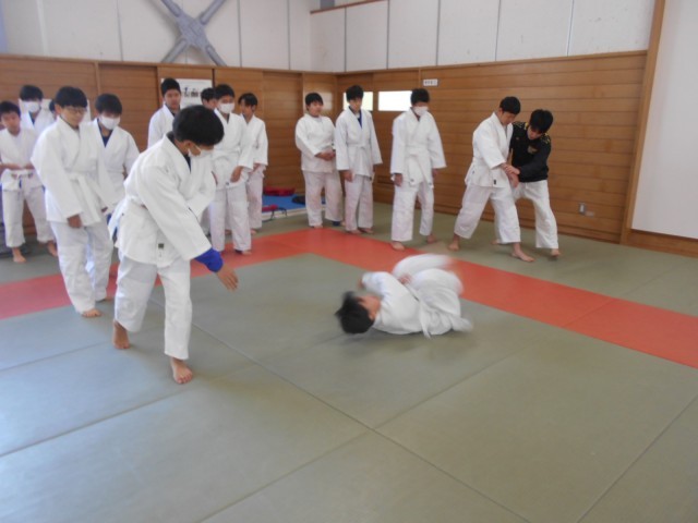2組保健体育は、柔道の基本を学習中。今日は前回り受け身を練習しました。恐怖心があるのか、うまく回れず、まだまだ練習が必要です。