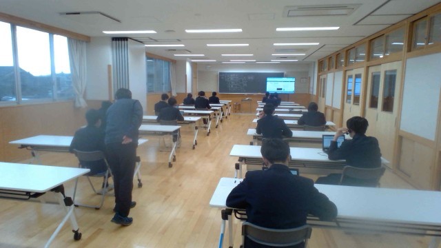 令和8年度に実施予定の全国学力・学習状況調査(中学校英語・CBT方式)を円滑に実施するために、事前検証問題を用いて練習を行いました。今回は、「話すこと」「書くこと」「話すこと」「読むこと」の問題に取り組み、ヘッドホンを使って話したり、キーボードでタイピング入力をしたりしました。