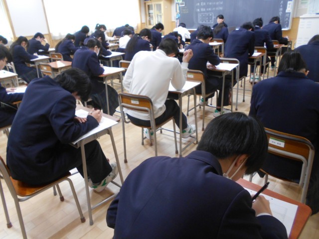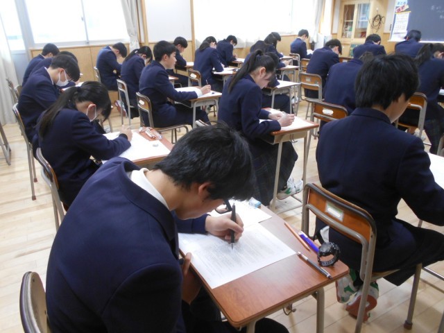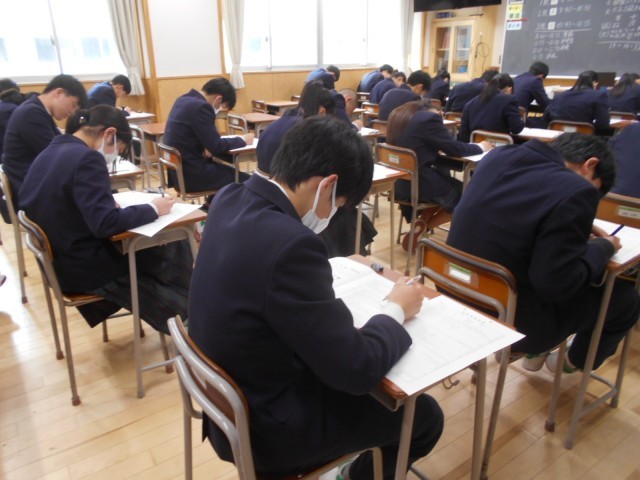 3年は、先週学年末考査を終えており、今日、明日は実力テストに臨みます。そして、これが中学校で受ける最後のテストです。頑張ってください。