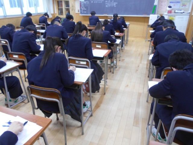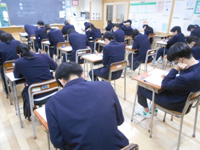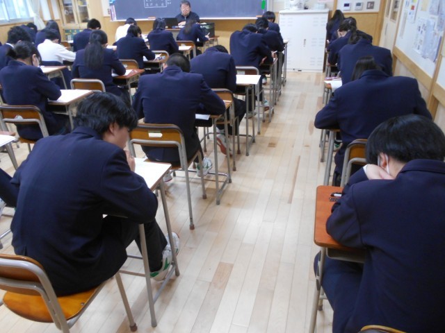 最後の数学のテストに取り組んでいます。これで、学校でのテスト受験は全て終了です。ひとまずお疲れ様でした。そして、来週は県立高校一般入試です。受検する人はもうひと踏ん張りです。頑張ろう。