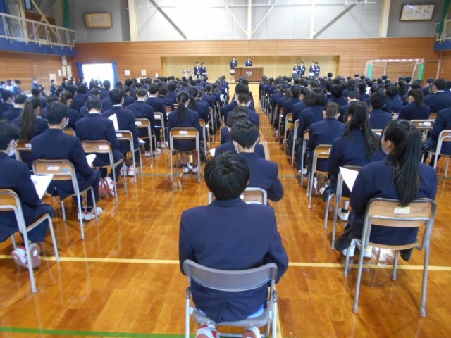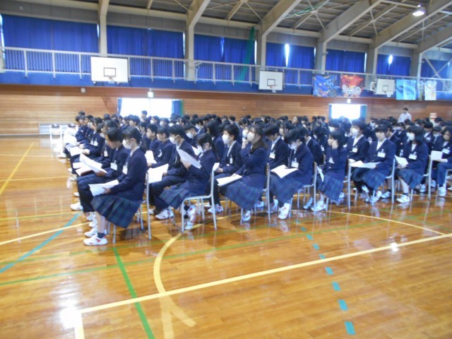 令和8年度前期生徒会役員選挙立会演説会が行われました。有権者である1、2年生徒会員は、会長候補1名、副会長候補3名の演説とそれぞれの応援演説を聞き、投票すべき候補者を誰にしようか、しっかりと考えているようでした。