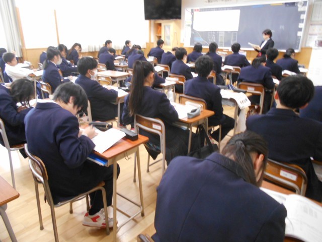 3組英語では、先日の県立高校一般入試の英語の問題の中で、1年生でも解けそうな問題に挑戦しました。「自信のある人?」の問いかけに何人もの生徒が手を挙げていました。