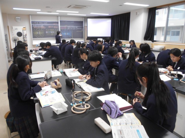 写真上から1組理科、2組英語、3組保健体育の様子