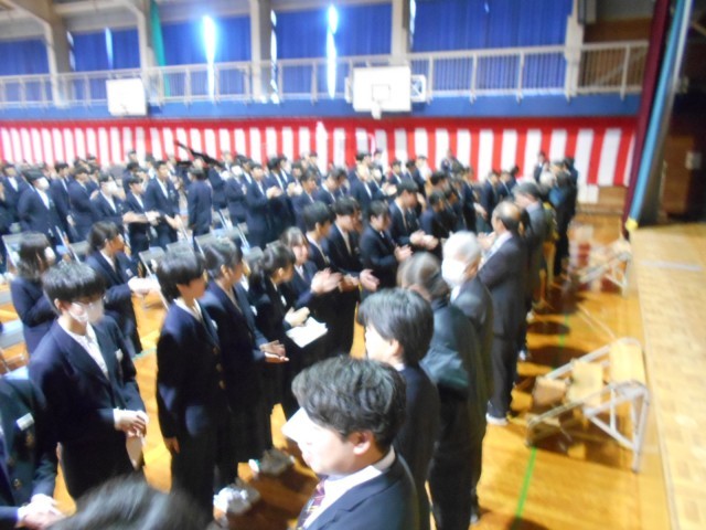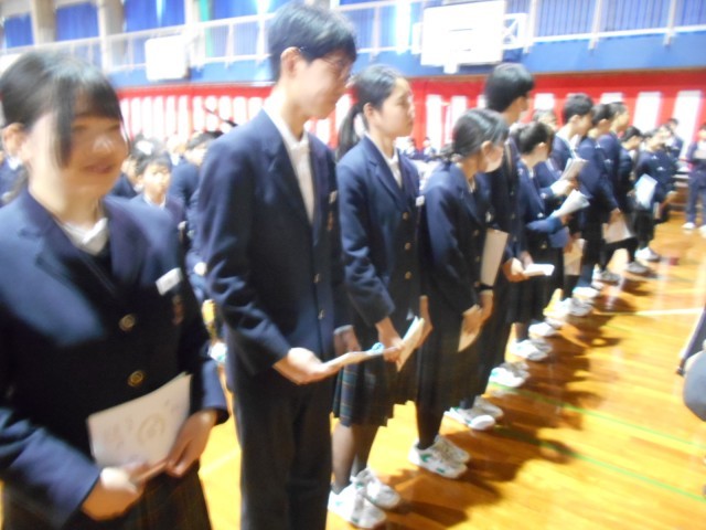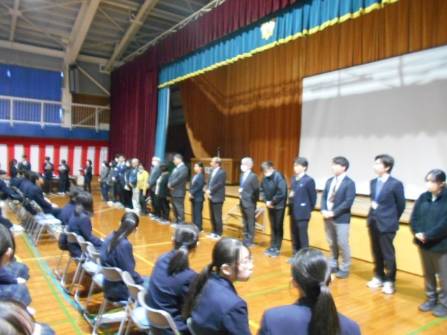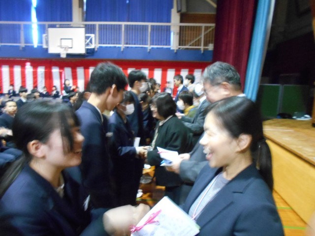 3年生を送る会が終わろうとしているとき、「ちょっと待った!」の声が3年生からあがり、急遽(とはいえ、準備してあったのですが)謝恩の集いになりました。教職員に対して、3年生が書いてくれた感謝のメッセージを代表生徒が渡してくれました。とてもうれしかったです。あとでゆっくり読みます。