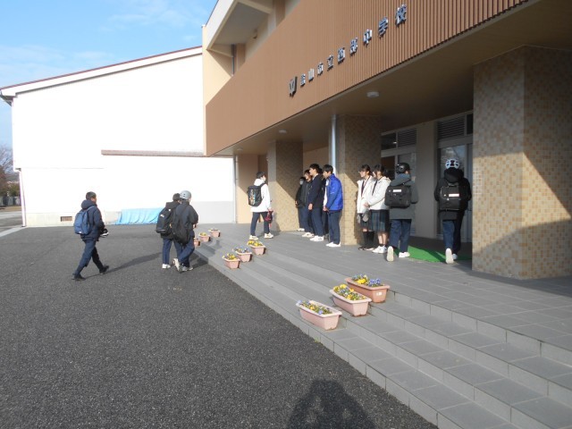 よく晴れた朝のウェイクアップスマイル。3年生が卒業したとはいえ、普段より人が少なく感じる登校風景。その後、出欠確認するとインフルエンザ等による欠席者が急増していました。今は元気な人も不要不急の外出を避け、落ち着いて過ごしましょう。
