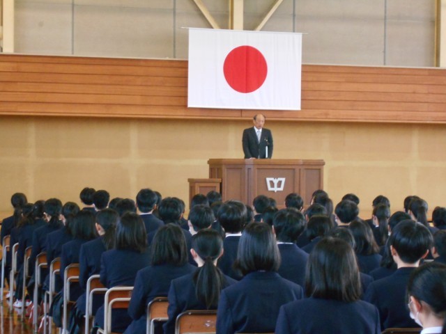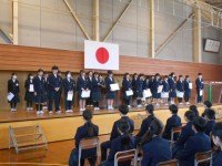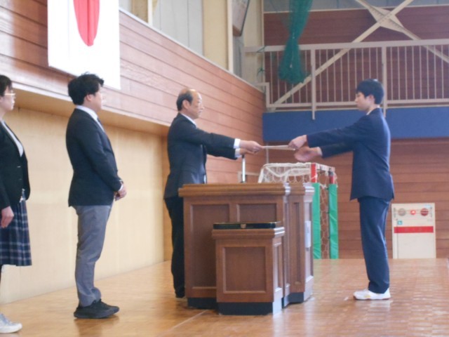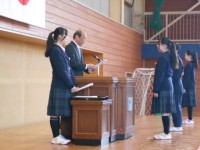 令和7年度修了式が行われました。1学年、2学年の代表生徒に校長から修了書が渡されました。その後、校長の式辞では、「西部中学校の校訓『知性豊かに』、『理想高く』、『誠実に生きる』を中学校生活だけでなく、今後の人生で大切にしてください。」とお話がありました。
