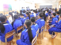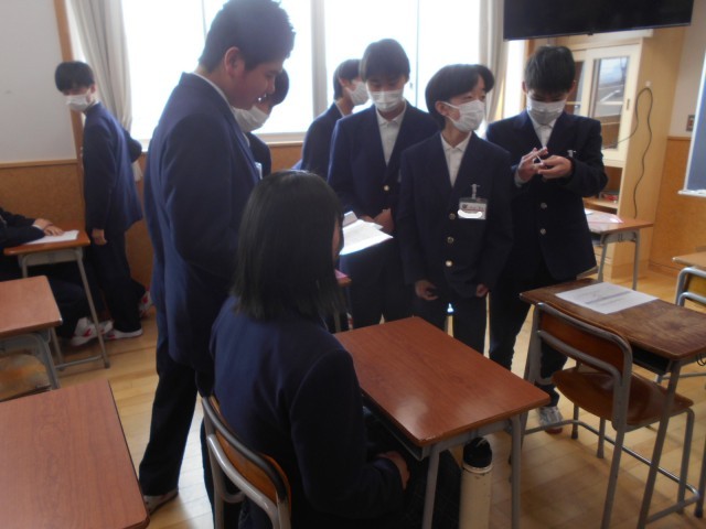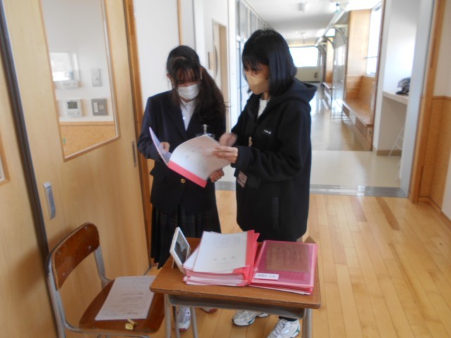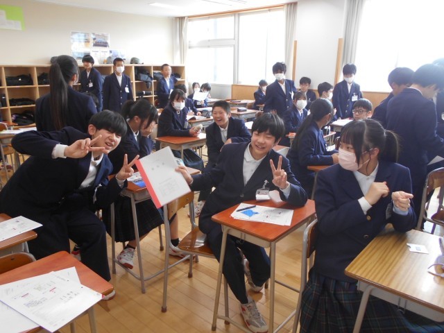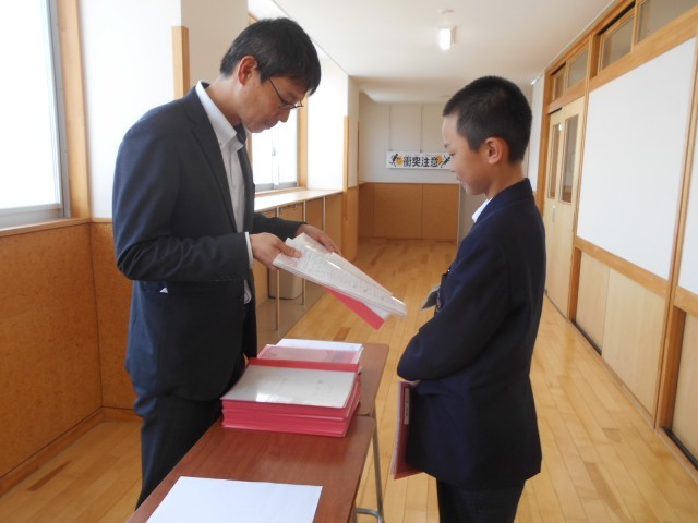 式を終えて教室に戻り、最後の学活で通知表を受け取りました。教室の中では、通知表を見せ合ったり、楽しく談笑している様子が見られました。1年間一緒だったこのメンバーで過ごす最後の時間です。