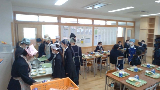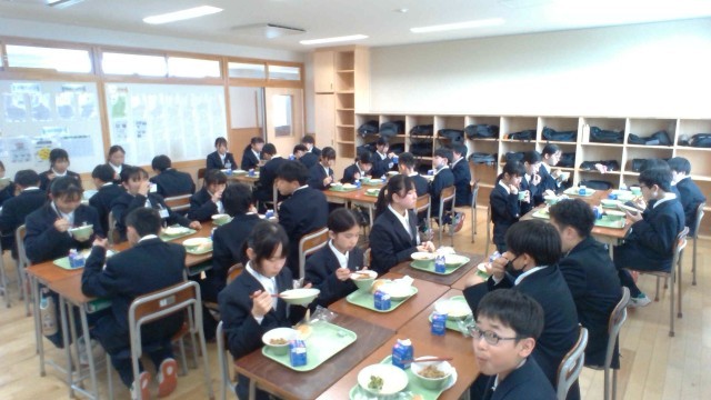 4月13日(月)給食の様子(1年)