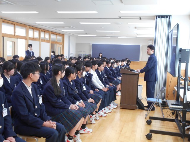 2年生では、2限目にSNS危険防止教室を行いました。警察署の方のお話を聞いたり、動画を観たりしながら、生徒たちは真剣な表情で聞き入っていました。