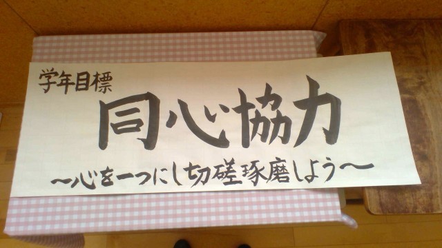 1学年学級目標が決定しました。学年目標が達成できるように、全員の心を一つにして切磋琢磨していこう。