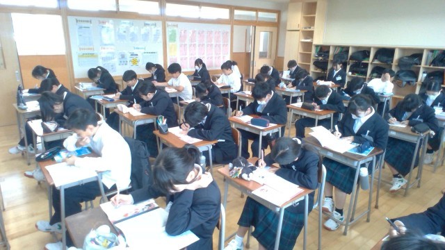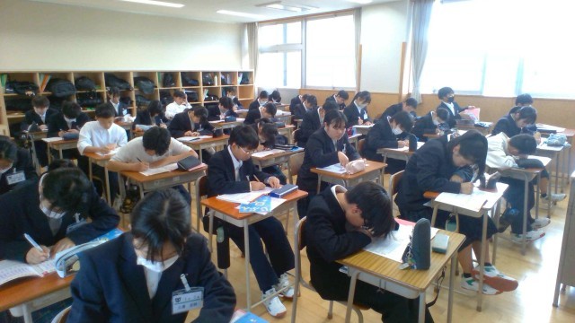 朝の活動の様子です。朝学活の後、生徒たちは静かに読書をしたり、自習をしたりしています。時間を有効に使っていますね。